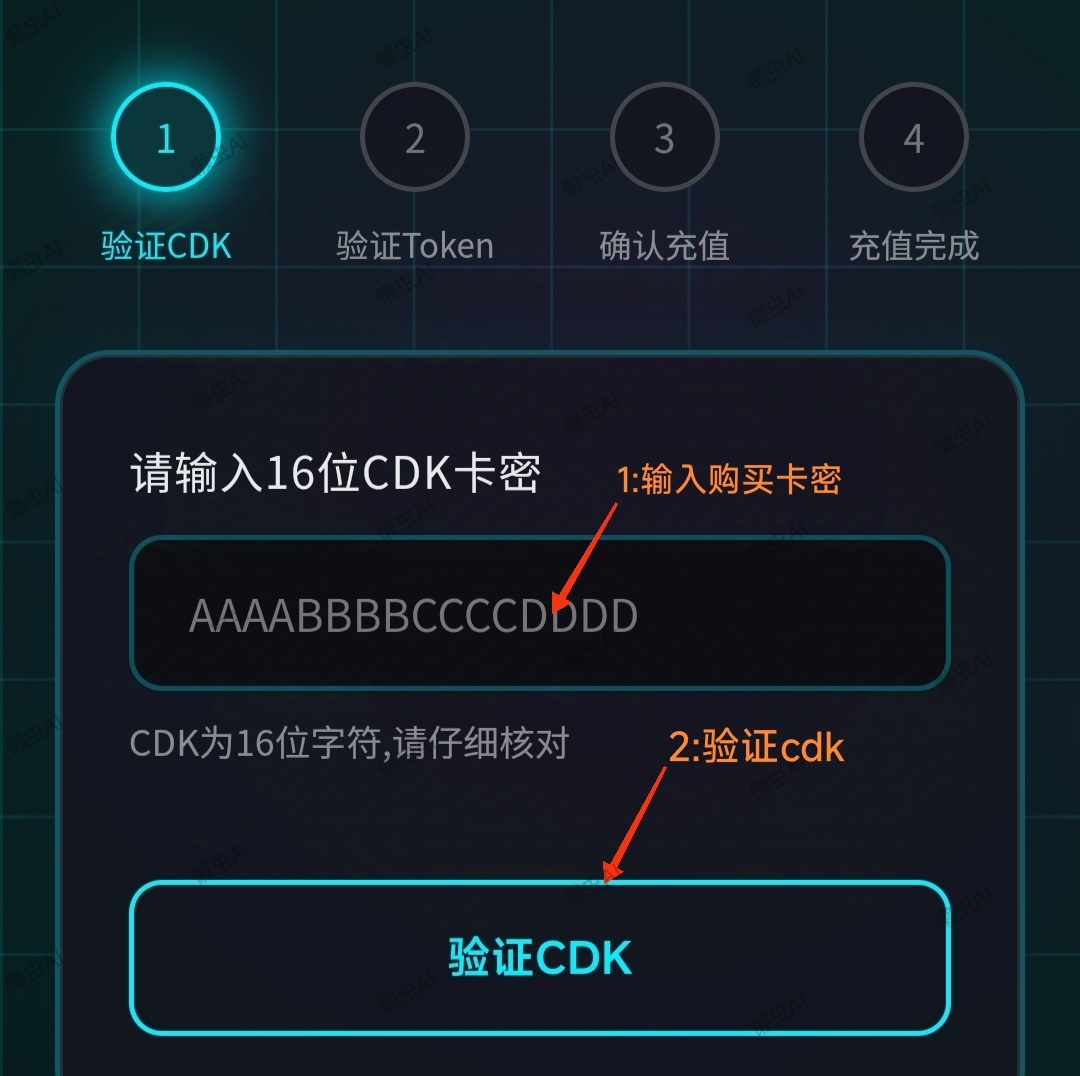 🍉 流程: 打开充值站 → 验证卡密 → 输入token → 兑换成功🎉